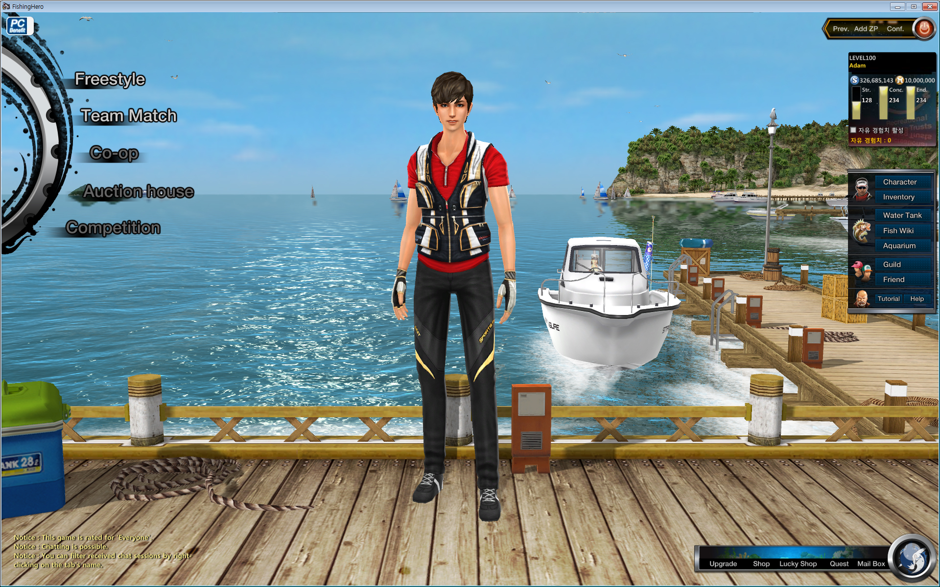 자유모드, 개인전, 단체전 등의 다양한 게임모드를 통해 다른 유저와 협동 및 대결을 펼칠 수 있으며, 어류도감 등을 통해서는 자신이 잡은 물고기 등을 수집, 기록하여 보관하실 수 있습니다. 다양한 모드와 함께 특이한 물고기, 큰 물고기, 비싼 물고기로 나만의 수족관을 꾸미실 수 있습니다