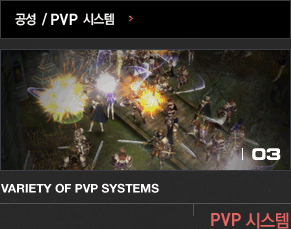플레이어간의 자유로운 대결 !새로 추가된 多 vs 多 전투로 인한 박진감 넘치는 전쟁을 경험하실 수 있습니다. 길드원이여 힘을 합치자! 성을 점령하기 위한 치열한 공성전은 길드원의 힘을 합치지 않고는 불가능합니다. 최고의 명예를 얻을 수 있는 기회를 놓치지 마세요.