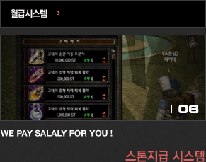 매달 지급되는 스톤 ! 게임을 처음 시작하면서 물약을 사느라 힘들게 몬스터를 사냥하지 않아도 매달 지급되는 스톤으로 보다 편하게 CC를 즐길 수 있습니다.