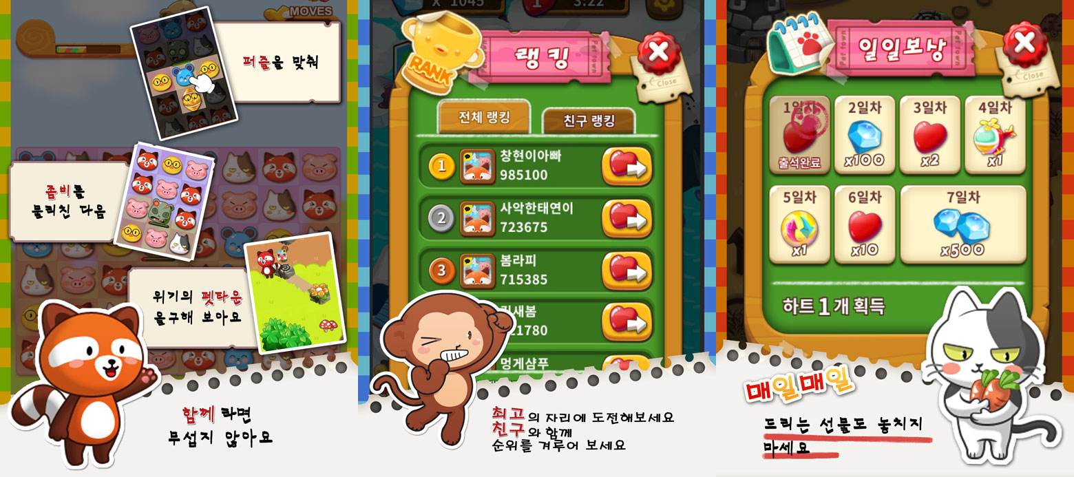 출석, 랭킹, 친구 등 다양한 시스템 지원